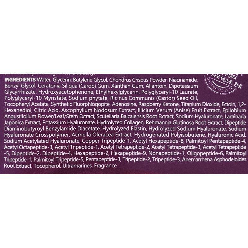 - Комплекс из 9 пептидов – восстанавливает тургор, разглаживает мимические, возрастные изломы, стимулирует синтез коллагена, эластина, регенерирует, улучшает защитные свойства, повышает упругость, эластичность кожи.
