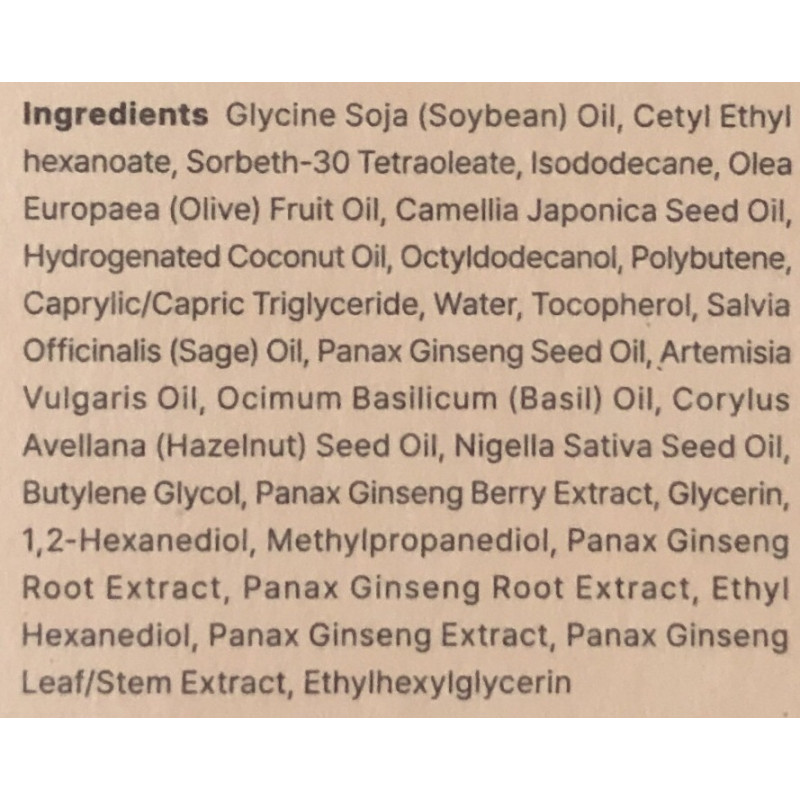Формула олії містить цінне масло насіння женьшеню, яке відмінно відновлює і захищає шкіру від негативного впливу ззовні.