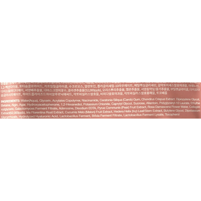 Приємна гідрогелева текстура маски надає відчуття релаксу та легкої прохолоди. Її основа розроблена з колагенової сироватки високої концентрації, гіалуронової кислоти та галактомісісу, які здатні проникати у глибокі шари епідермісу та надавати поживної сили та сяйва.