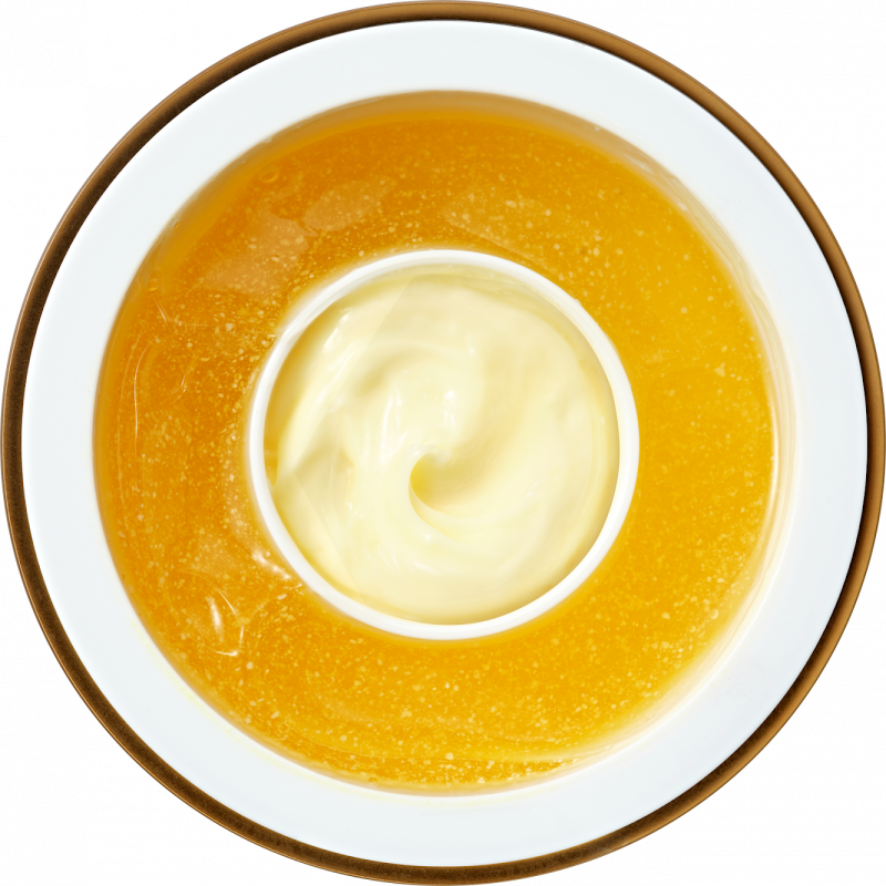 Всередині баночки – подвійна система догляду. В центрі знаходиться густий насичений крем з активами – справжній концентрат сяйва та оновлення.