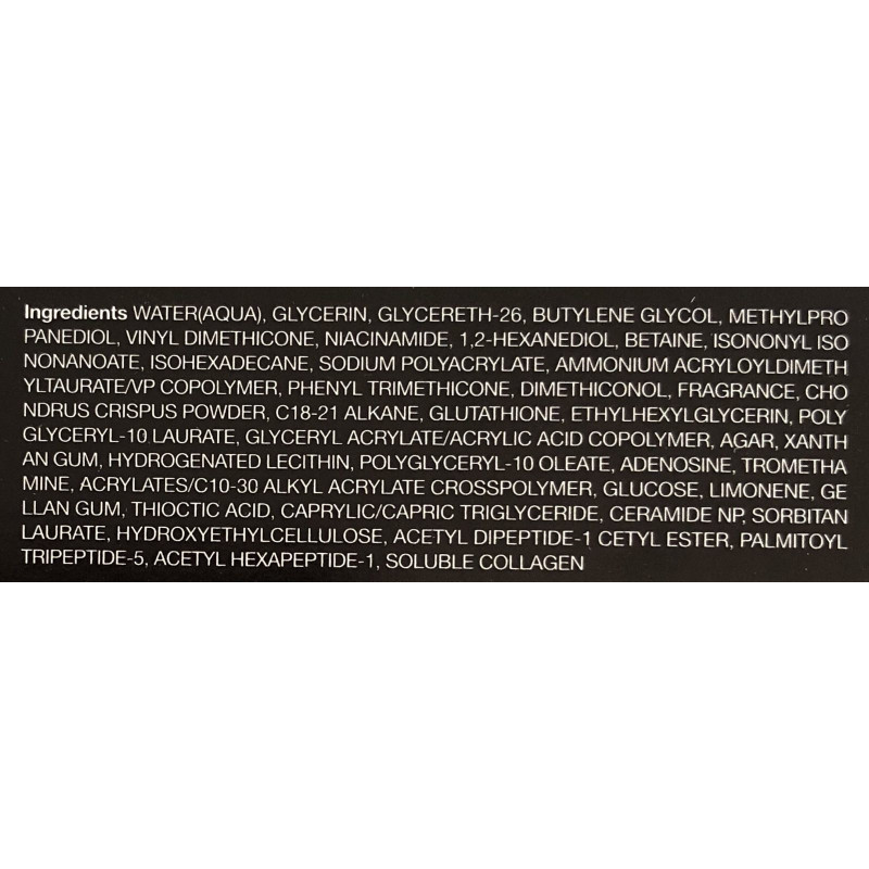 - Глутатіон - має м’яку освітлювальну дію шляхом пригнічення активності тирозинази та зменшення виробництва меланіну, бореться з тьмяністю та нерівномірним кольором, має потужні антиоксидантні властивості, сповільнює процеси старіння;
