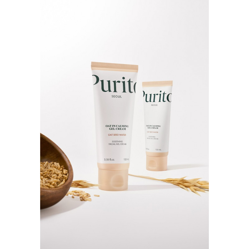 Purito Seoul Oat-in Calming Gel Cream Заспокійливий гель-крем з живильною водою з насіння вівса призначений для швидкого заспокоєння подразненої, сухої, чутливої шкіри. Його можна також використовувати для зволоження жирної та проблемної шкіри.