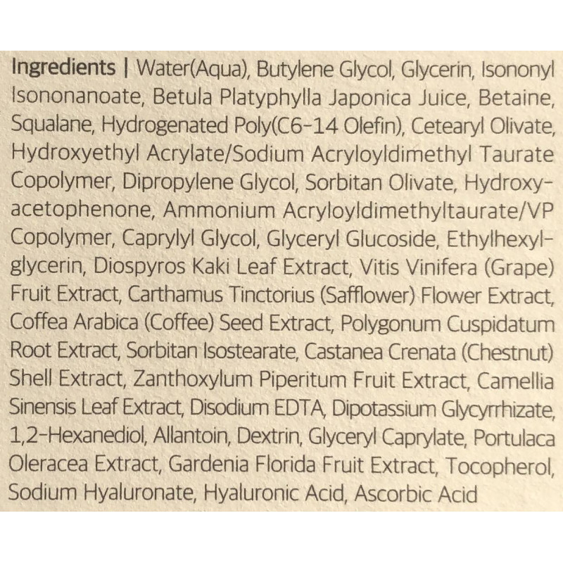- Березовий сік з високогір'я Індже - наділений протизапальною, регенеруючою, заспокійливою, тонізуючою дією. Інгредієнт зволожує епідерміс, покращує еластичність шкіри, працює з небажаною пігментацією шляхом вмісту вітамінів С і В, саліцилової, лимонної та яблучної кислот, мінеральних солей, антиоксидантів-флавоноїдів та численних амінокислот.