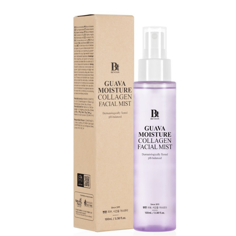 Benton Guava Moisture Collagen Facial Mist – легкий зволожувальний міст для щоденного догляду, який миттєво освіжає шкіру, надає природного сяйва та підтримує оптимальний рівень вологи.