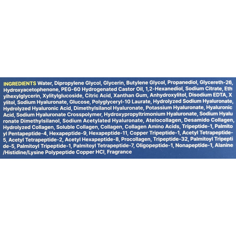 - Пептиди та колаген (трипептиди, гексапептиди, пальмітоїлпептиди) — стимулюють вироблення власного колагену, повертають шкірі пружність і щільність.