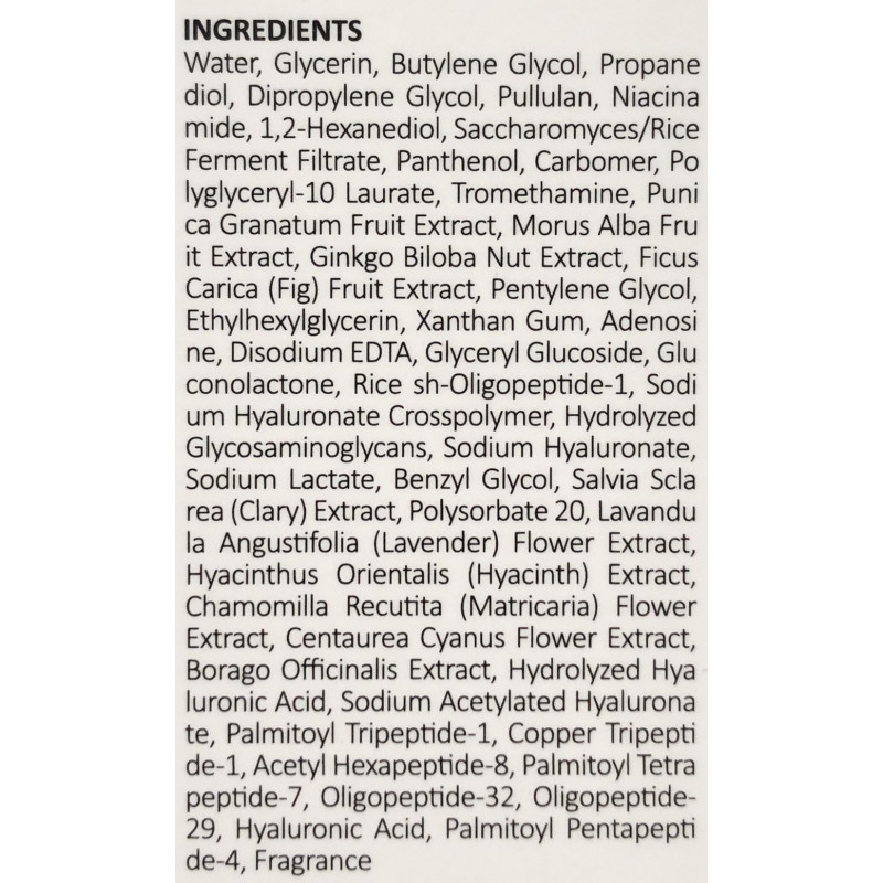 Спеціальні інгредієнти, такі як Matrixyl 3000, Oriental Beauty Fruits Newplex, RiFerm-NPG і Blue Complex, забезпечують поліпшення пружності та зміцнення шкіри без викликання подразнення. Ці активні компоненти працюють разом, щоб допомогти підвищити тонус шкіри, стимулювати вироблення колагену і забезпечити м'якість та живлення шкіри.