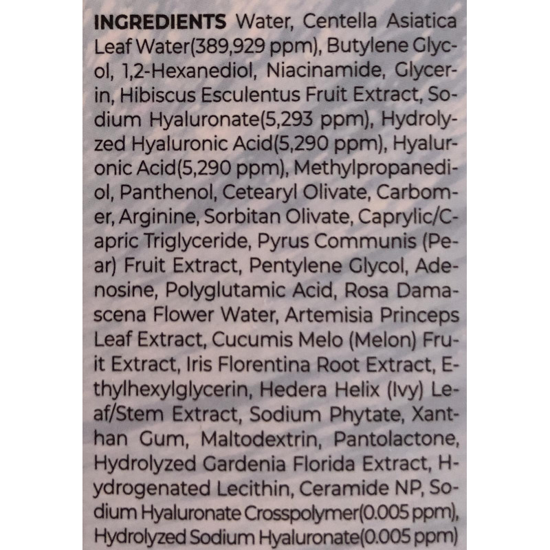- Гіалуронова кислота - завдяки своїй 5-шаровій структурі гіалуронова кислота глибоко зволожує шкіру, зберігаючи вологу протягом тривалого періоду, в результаті чого шкіра стає еластичною та зволоженою