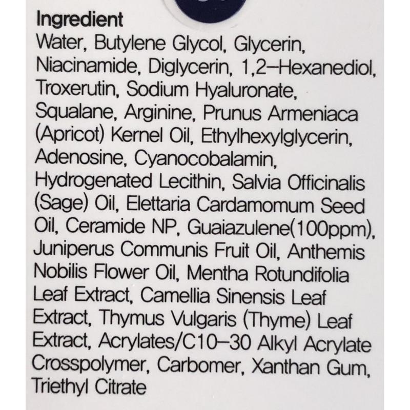 - Гвайазулен (100ppm) — потужний заспокійливий та протизапальний компонент, зменшує подразнення та почервоніння, прискорює регенерацію пошкодженої шкіри та захищає від агресивних факторів середовища.