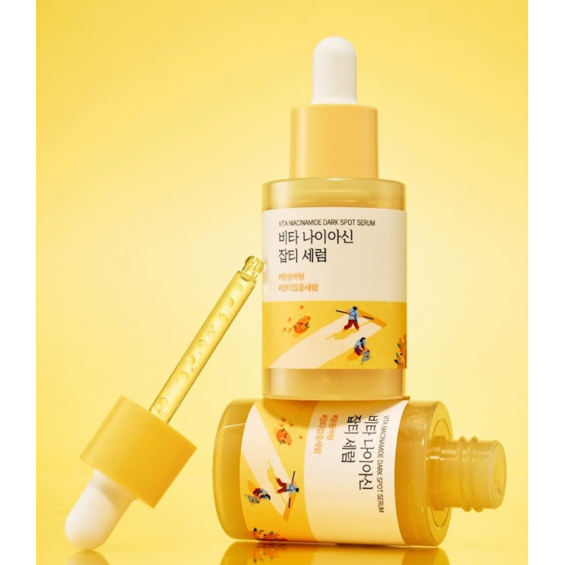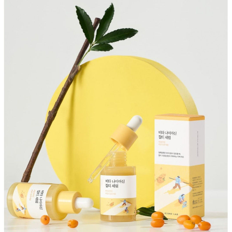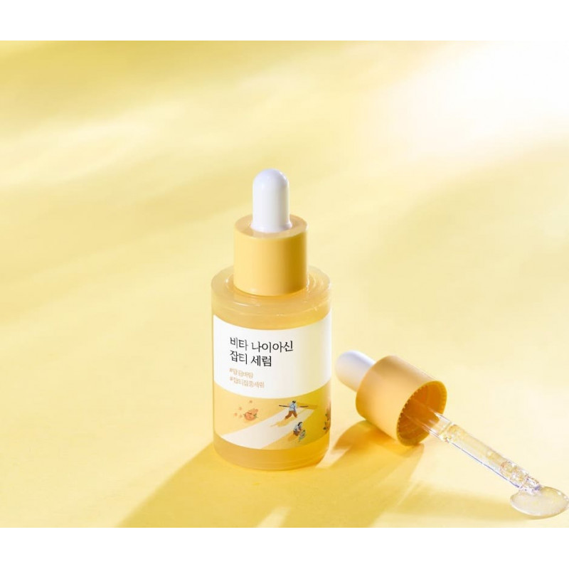 ROUND LAB Vita Niacinamide Dark Spot Serum - це високоефективна сироватка для боротьби з темними плямами та пігментацією, створена на основі комплексу активних компонентів.