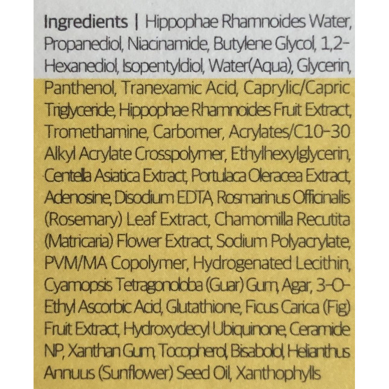 Екстракт обліпихи та вітамін С надають шкірі сяйва, живлять її та захищають від впливу вільних радикалів, сприяючи покращенню її загального стану.