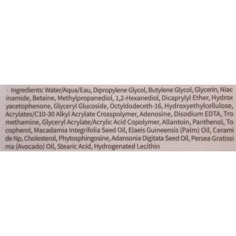 - керамідна композиція, отримана з рослинних олій авокадо, макадамії та баобаба має багатий жирнокислотний склад, підтримує природні бар’єрні функції шкіри для захисту від факторів навколишнього середовища, допомагає відновити гідроліпідну плівку, попереджає трансепідермальну втрату води;