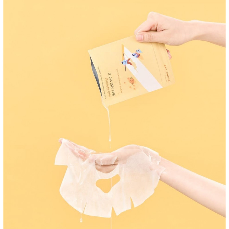 Нанесіть маску на чисте обличчя та залиште на 15-20 хвилин. Зніміть маску, а сироватку, що залишилася, вбийте у шкіру подушечками пальців.