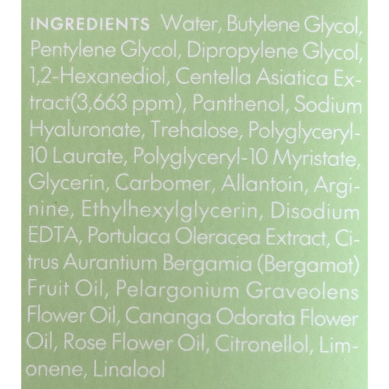 Цей тонер, збагачений екстрактом Центелли Азіатської (3,663 ppm), миттєво зменшує почервоніння та дарує відчуття комфорту, завдяки своїм потужним заспокійливим властивостям.