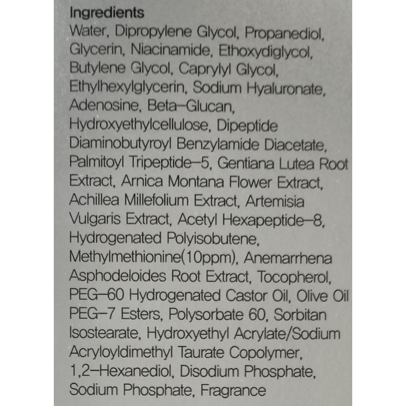 Пептиди – мають омолоджуючу дію, розгладжують зморшки, перешкоджають старінню. Тонер містить два види пептидів – Syn®-Coll (активує виробництво колагену та повертає шкірі еластичність) та аргірелін (імітує ефект ботоксу, зменшує мімічні складки).